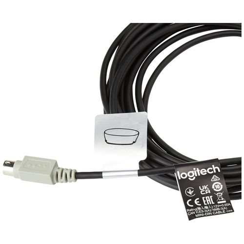 Logitech GROUP 15m Extended Cable 939-001490 is a 15-meter (49.2 feet) DIN extension cable with a built-in repeater for signal integrity. It features Mini-DIN-6 male-to-male connectors to replace the standard 5-meter cable included with GROUP. The cable supports routing through standard ¾-inch (19mm) conduits or dropped ceilings for hidden, professional setups. Velcro cable management straps are included for organization. The design maintains full data and power transmission without degradation.