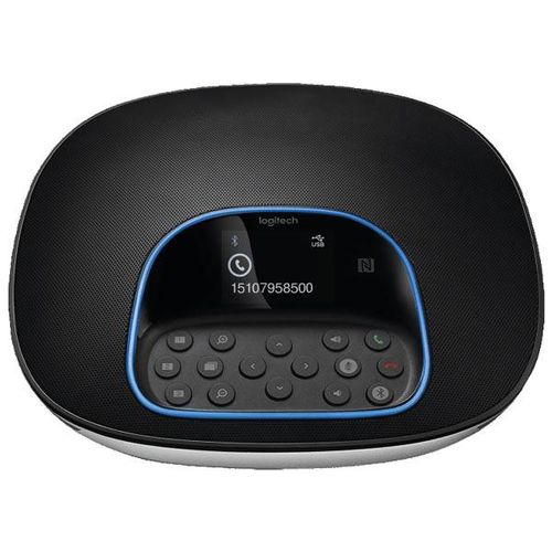 Logitech Group Conference Camera 960-001057 is a complete video conferencing solution with a PTZ camera, speakerphone hub, and wireless remote. The camera offers Full HD 1080p at 30 fps with Carl Zeiss optics, 90° diagonal field of view, motorized pan/tilt, and 10x lossless HD zoom. The speakerphone features 360° full-duplex audio with beamforming mics covering up to 6 meters (20 feet) diameter. The compact hub simplifies cabling with integrated data/power. Bluetooth and NFC enable mobile pairing. The system supports expansion mics for larger spaces.